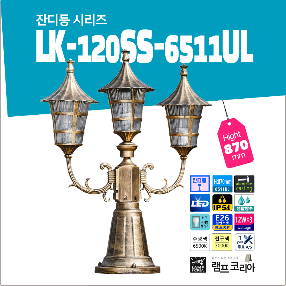 120SS-6511UL W710 X H870mm 엔틱골드 (기본색) LED12W 램프 3개 사용 알루미늄 다이케스팅 국내산 잔디등 정원등