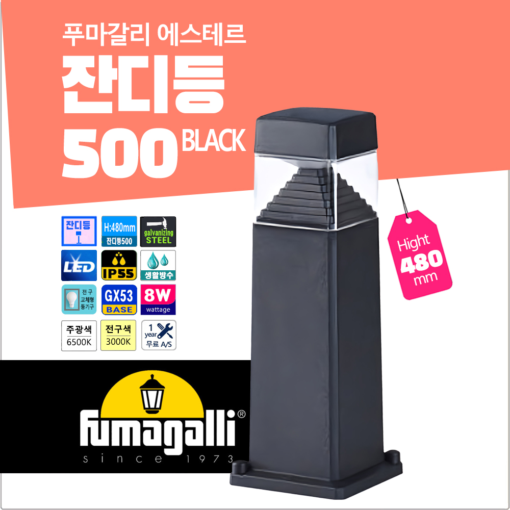 푸마갈리-에스테르-잔디등500-블랙 W175 X H480mm 검정 LED 8W 램프 사용 이탈리아 잔디등 정원등