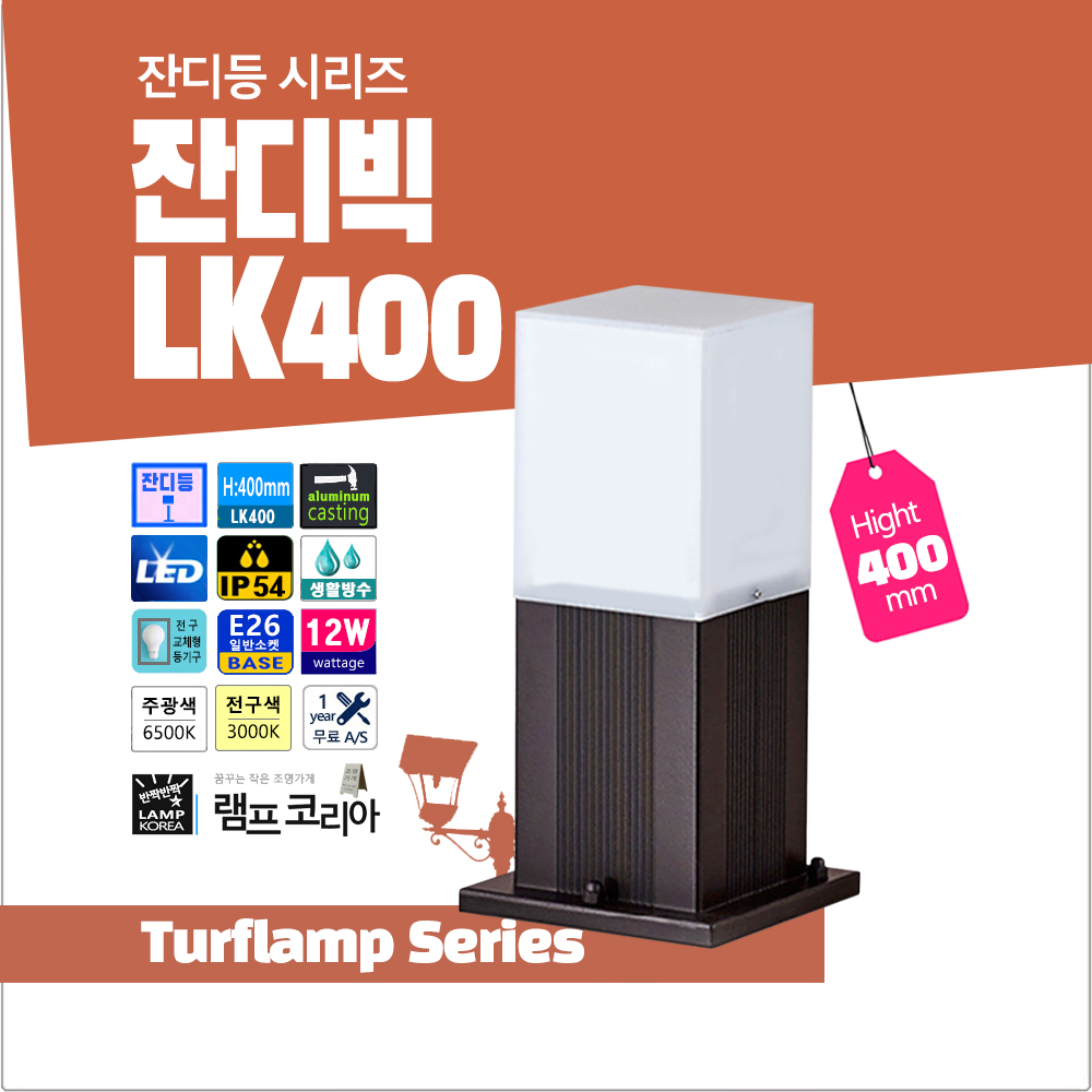 잔디빅LK400 W156 X H400 검정색 LED12W 램프 사용 알루미늄 다이케스팅 국내산 잔디등 정원등