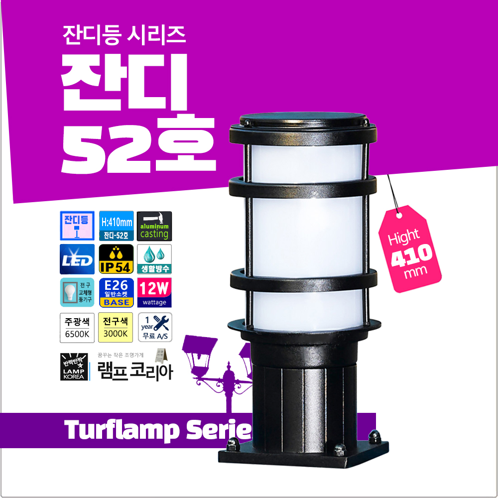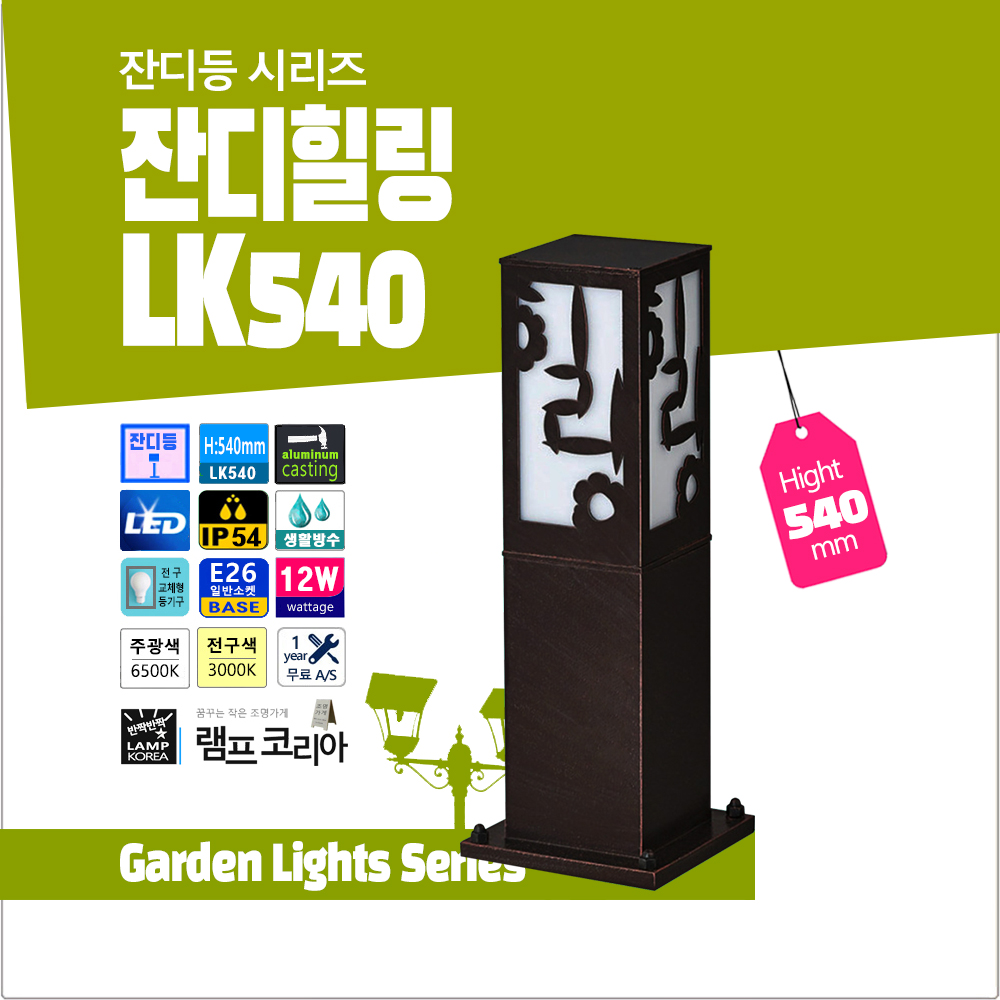잔디힐링 LK540 W130 X D130 X H540 검정색 (기본색) LED12W 램프 사용 알루미늄 다이케스팅 국내산 잔디등 정원등