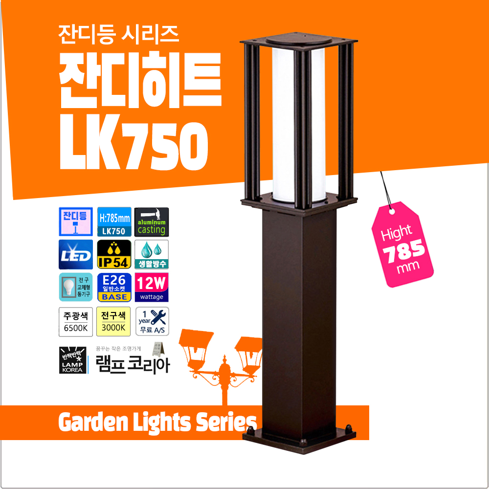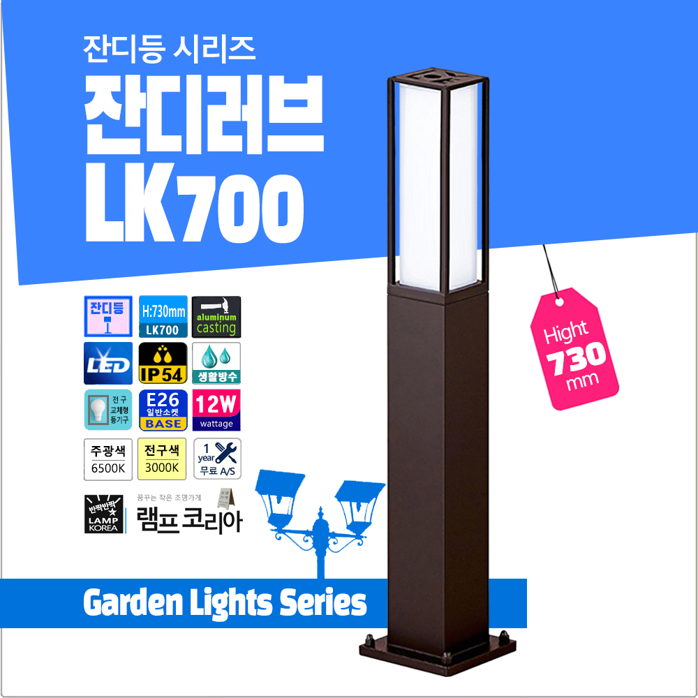 잔디러브 LK700 W100 X H730 검정색 LED12W 램프 사용 알루미늄 다이케스팅 국내산 잔디등 정원등