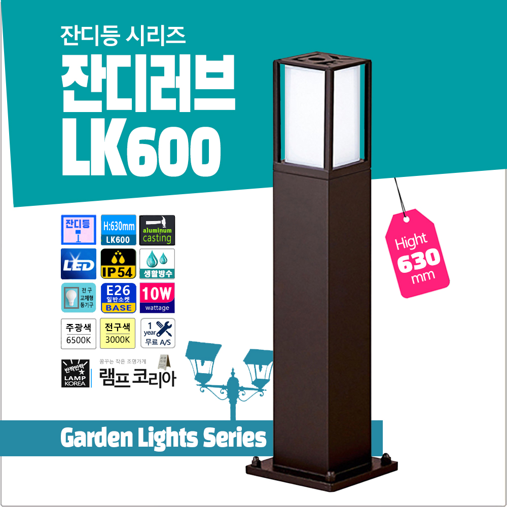 잔디러브 LK600 W100 X H630 검정색 LED10W 램프 사용 알루미늄 다이케스팅 국내산 잔디등 정원등