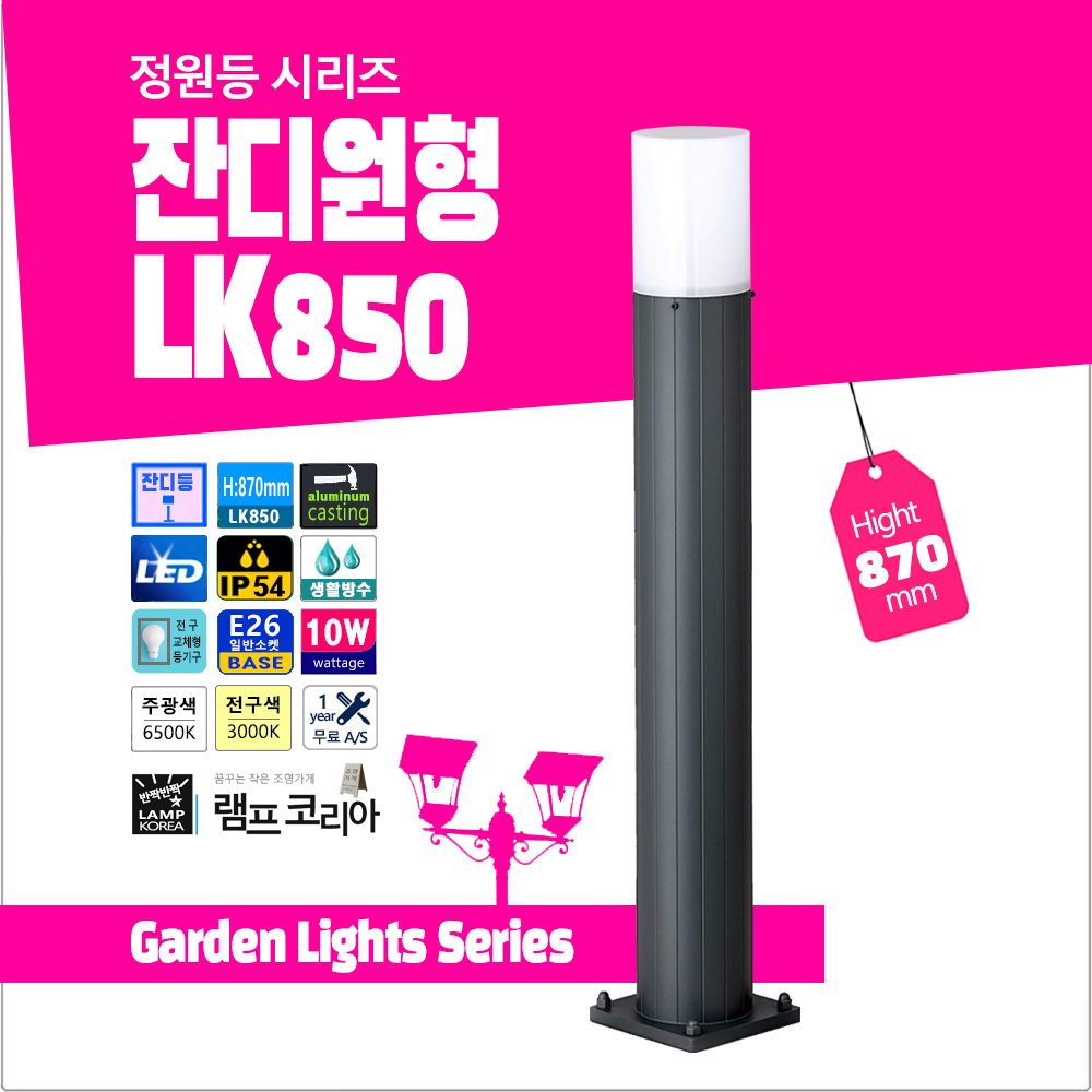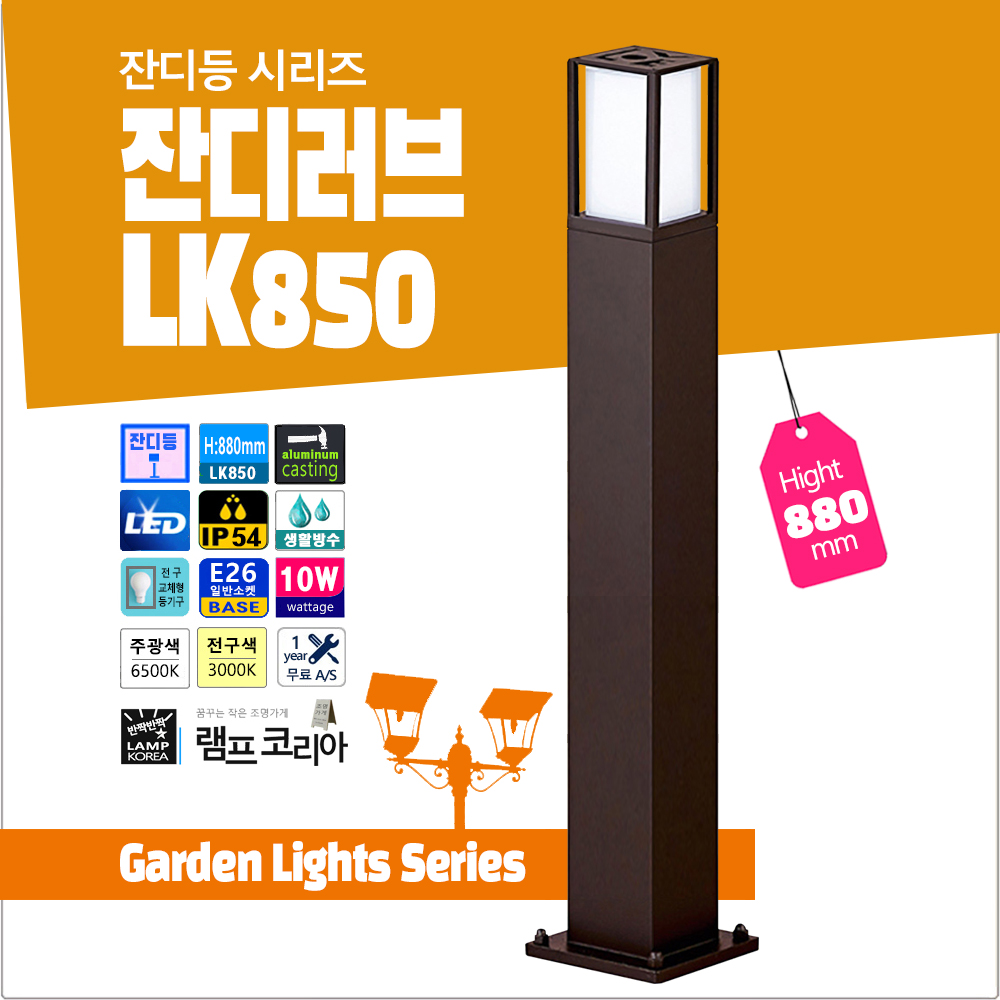잔디러브 LK850 W100 X H880 검정색 LED10W 램프 사용 알루미늄 다이케스팅 국내산 잔디등 정원등