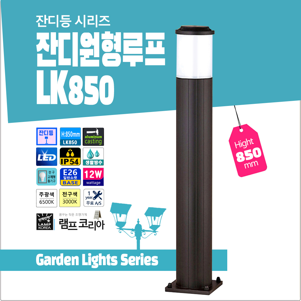 잔디원형루프 LK850 W120 X H880 검정색 LED12W 램프 사용 알루미늄 다이케스팅 국내산 잔디등 정원등