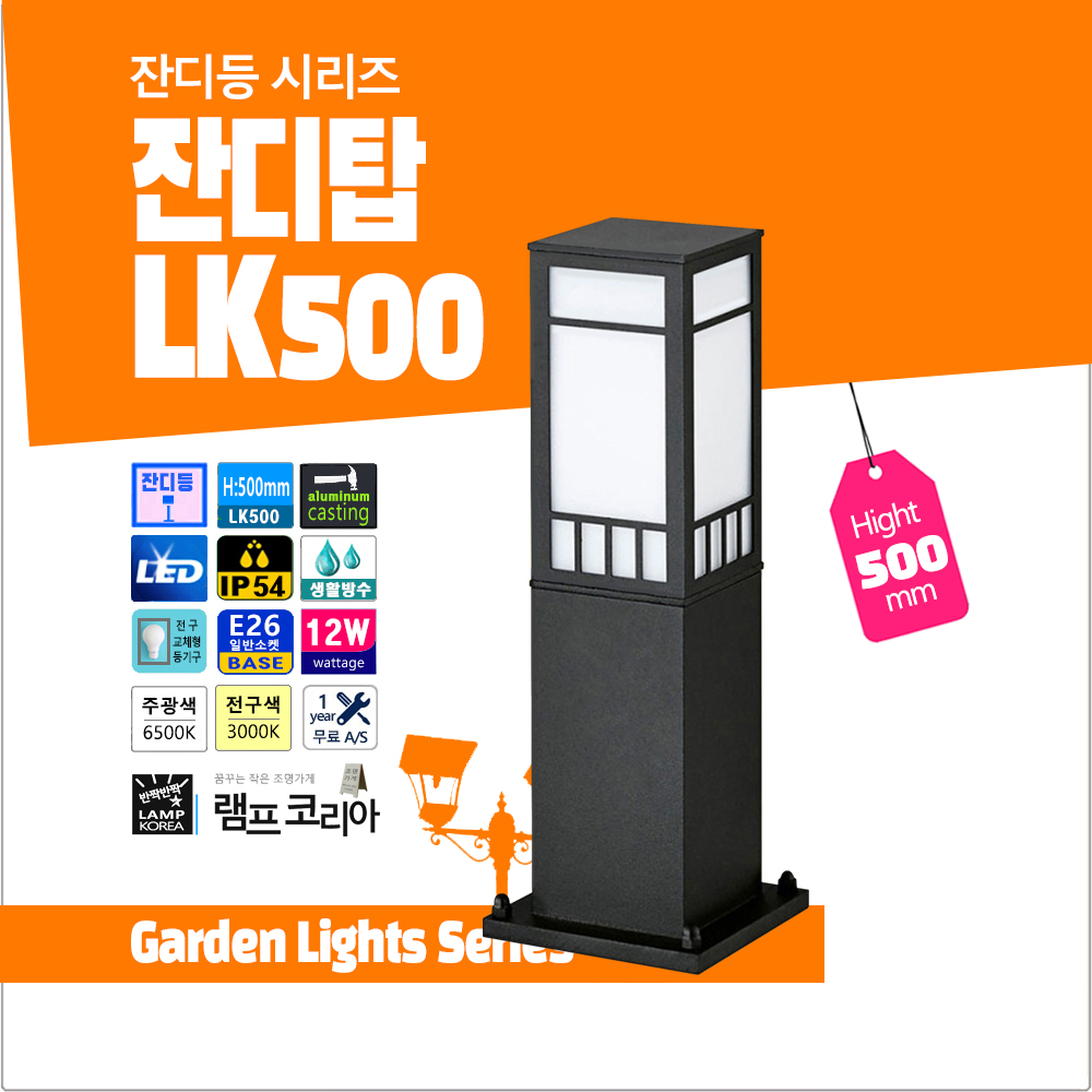 잔디탑 LK500 W130 X D130 X H500 검정색(기본색) LED12W 램프 사용 알루미늄 다이케스팅 국내산 잔디등 정원등