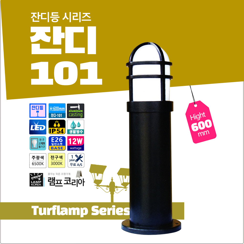 잔디101 W145 X H600 검정색 LED12W 램프 사용 알루미늄 다이케스팅 국내산 잔디등 정원등