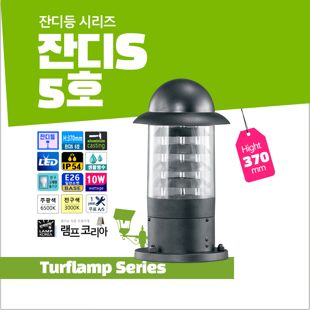 잔디S 5호 W200 X H370 검정색(기본색) LED10W 램프 사용 알루미늄 다이케스팅 국내산 잔디등 정원등