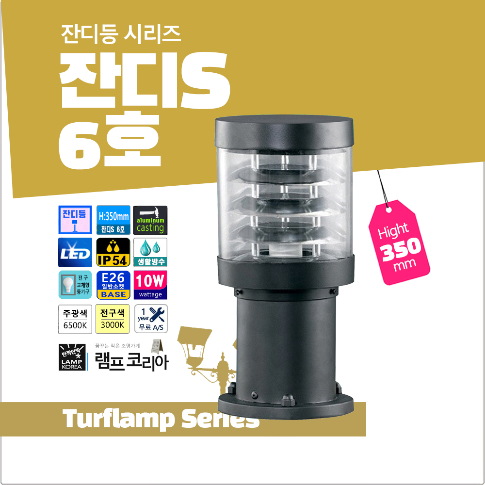 잔디S 6호 W160 X H350 검정색(기본색) LED10W 램프 사용 알루미늄 다이케스팅 국내산 잔디등 정원등