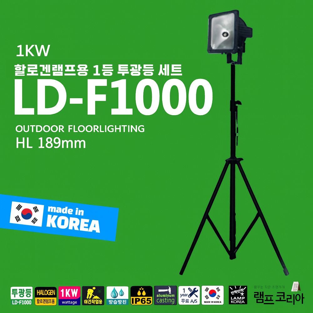 야간공사용 공사현장용 실내공사용 1KW 1000W 할로겐 투광등 스탠드 포함 LD-F1000 알루미늄 주물