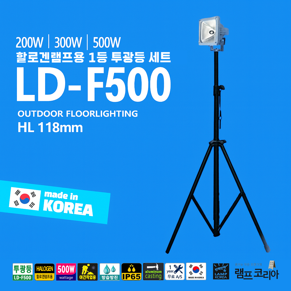 야간공사용 공사현장용 실내공사용 500W 1000W 할로겐 투광등 스탠드 포함 LD-F500 알루미늄 주물