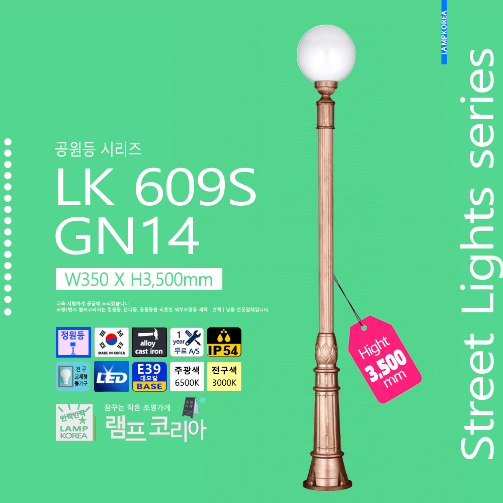 609S-GN14인치 W350 X H3,500 동색(기본색) 알루미늄 다이케스팅 국내산 정원등