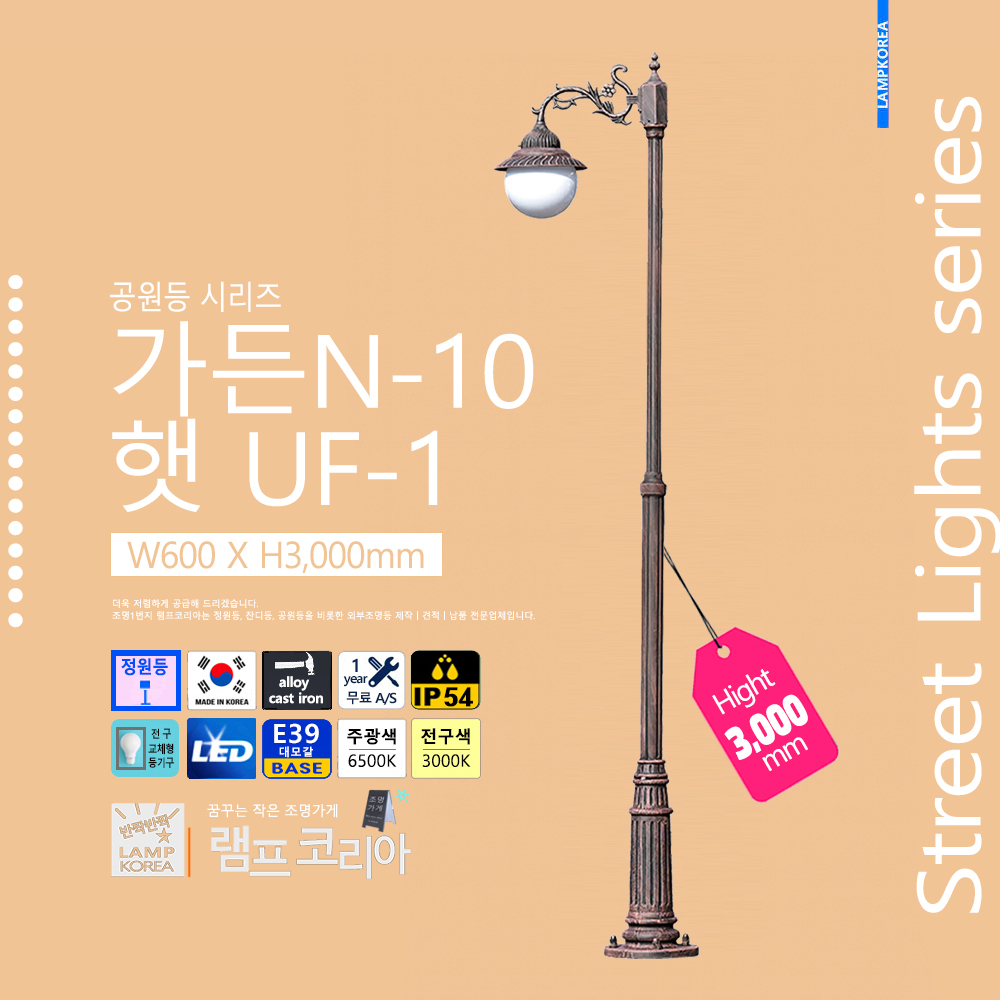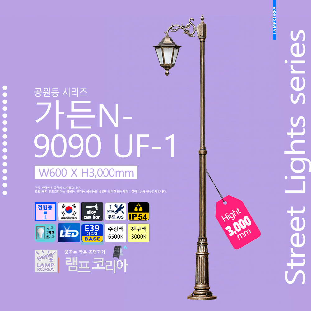 가든N-9090 UF-1 W600 X H3,000 엔틱(기본색) 알루미늄 다이케스팅 국내산 정원등