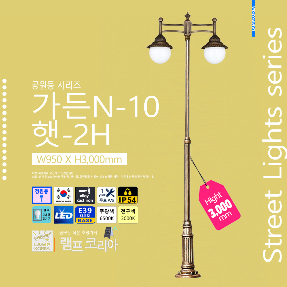 가든N-10인치 햇-2H W950 X H3,000 엔틱(기본색) 알루미늄 다이케스팅 국내산 정원등