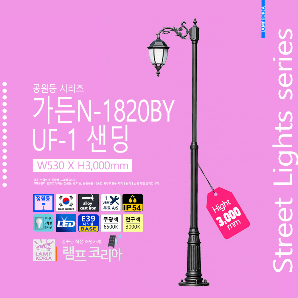 가든N-0830 UF-1 W590 X H3,000 엔틱(기본색) 알루미늄 다이케스팅 국내산 정원등
