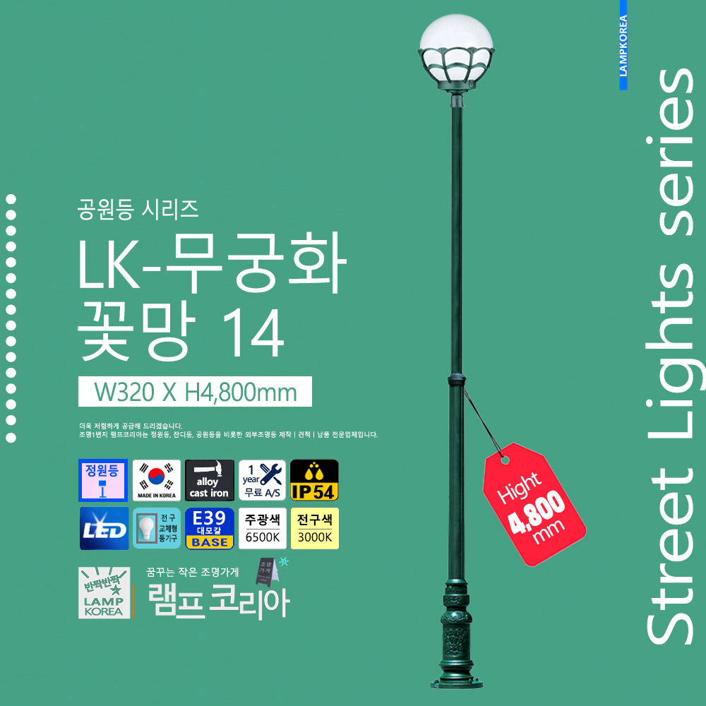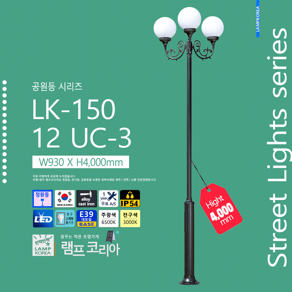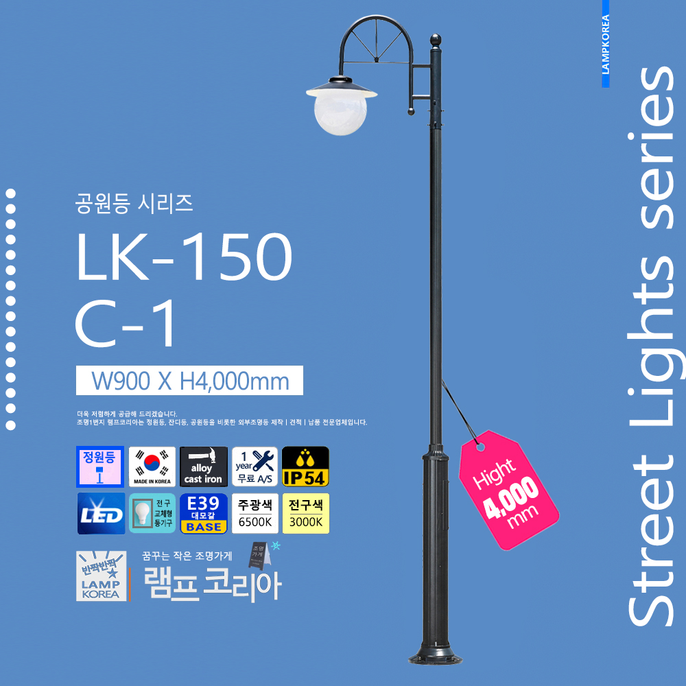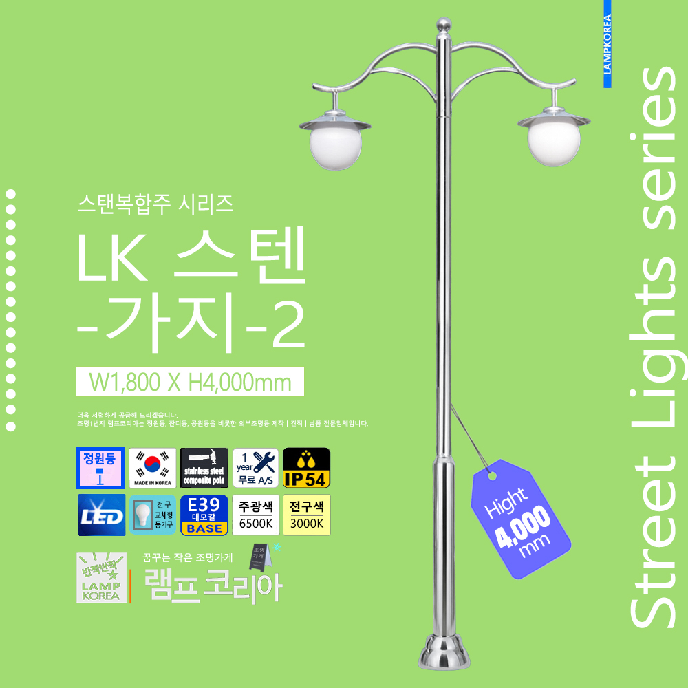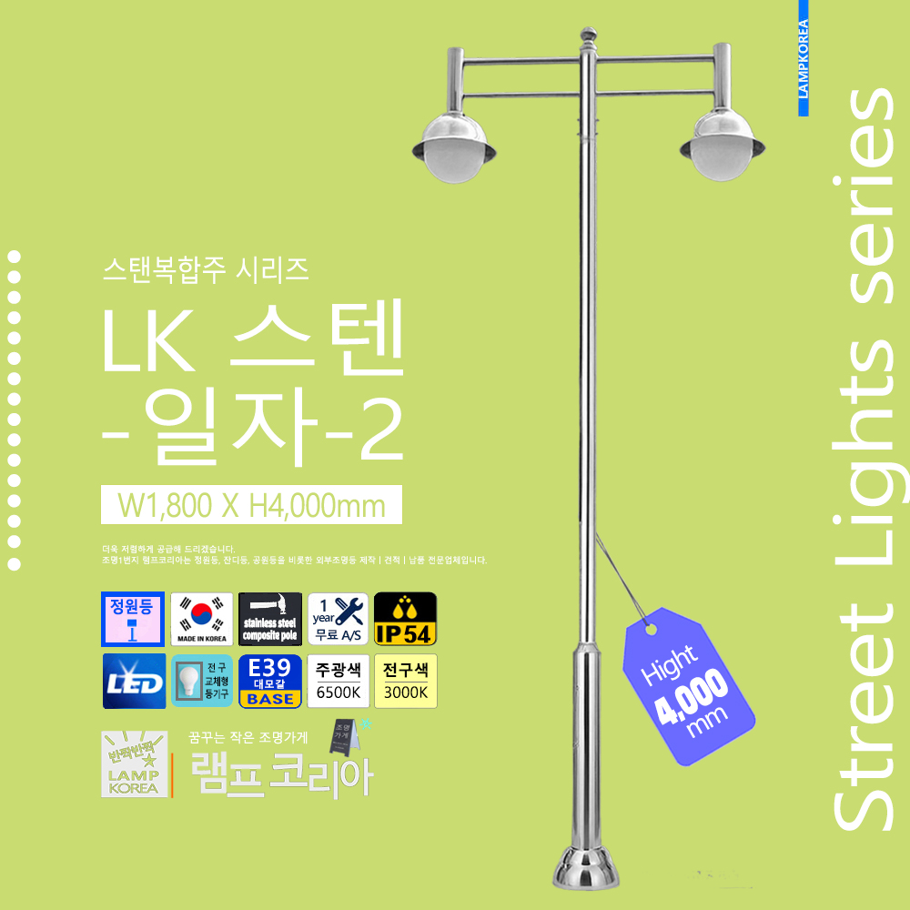 대형 공원등 LK-150-C-2 W1,800 X H4,000 알루미늄 주철합금 국내산 E39 LED50WX2 전구사용 (별매)