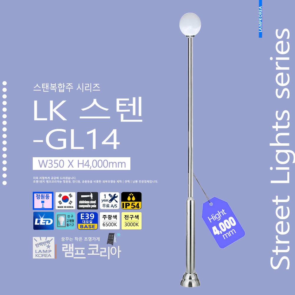 스텐복합주 LK-스텐-GL14 W350 X H4,000 스테인레스 스틸 E39 LED전구사용 국내산