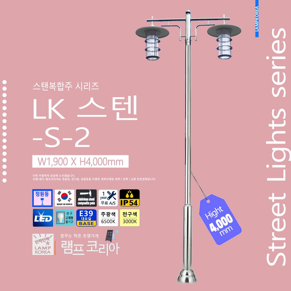 스텐복합주 LK-스텐-S-2 W1,800 X H4,000 스테인레스 스틸 E39 LED전구사용 국내산