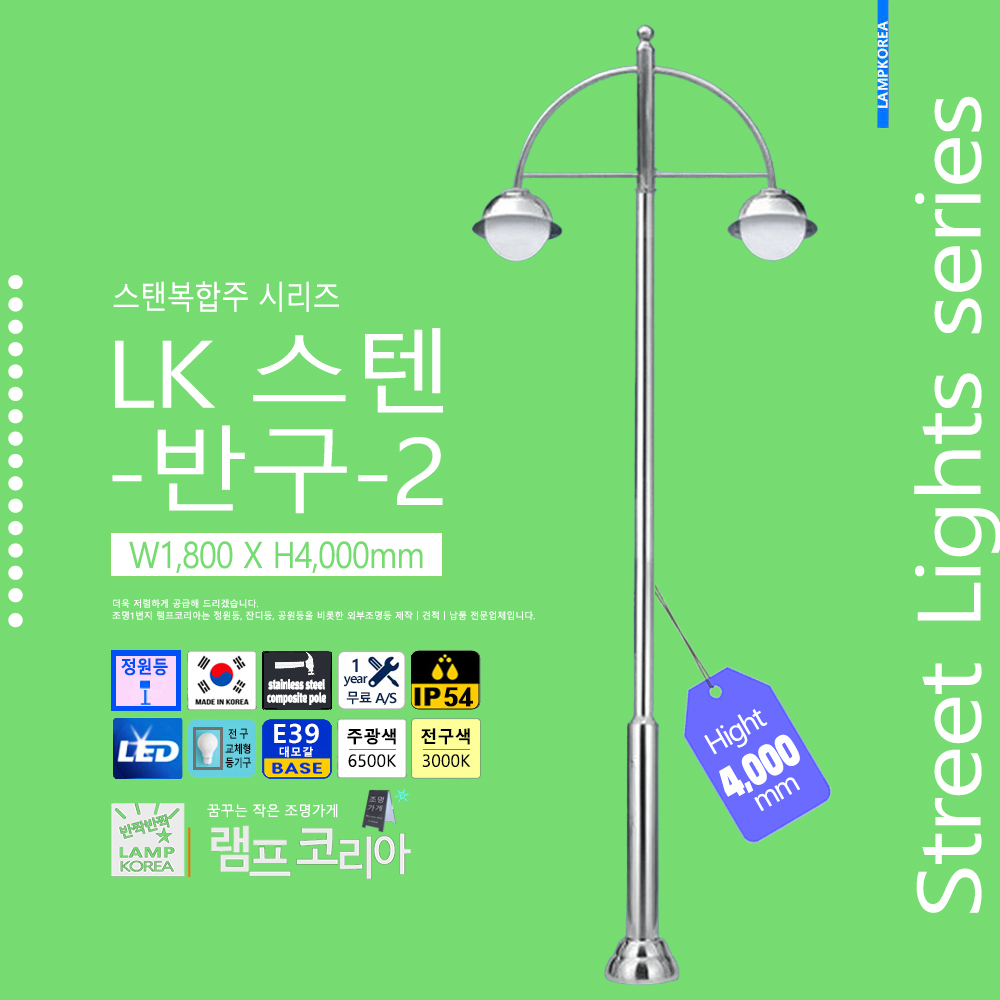 스텐복합주 LK-스텐-반구-2 W1,800 X H4,000 스테인레스 스틸 E39 LED전구사용 국내산
