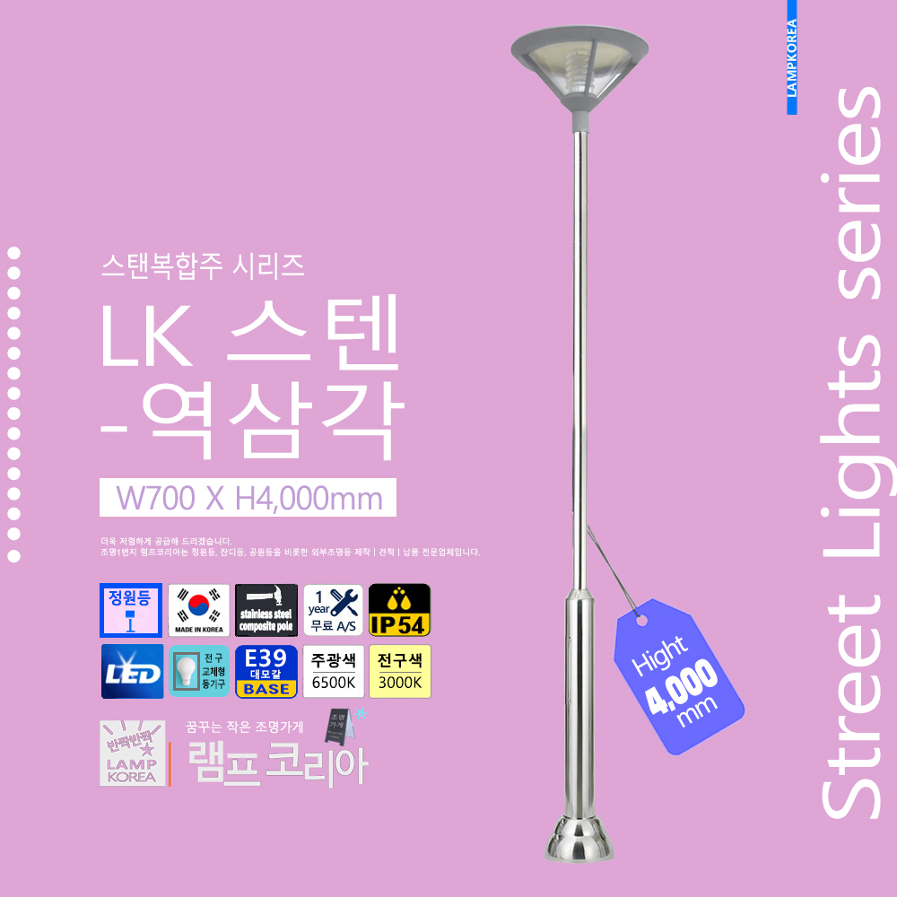 스텐복합주 LK-스텐-역삼각 W700 X H4,000 스테인레스 스틸 E39 LED전구사용 국내산