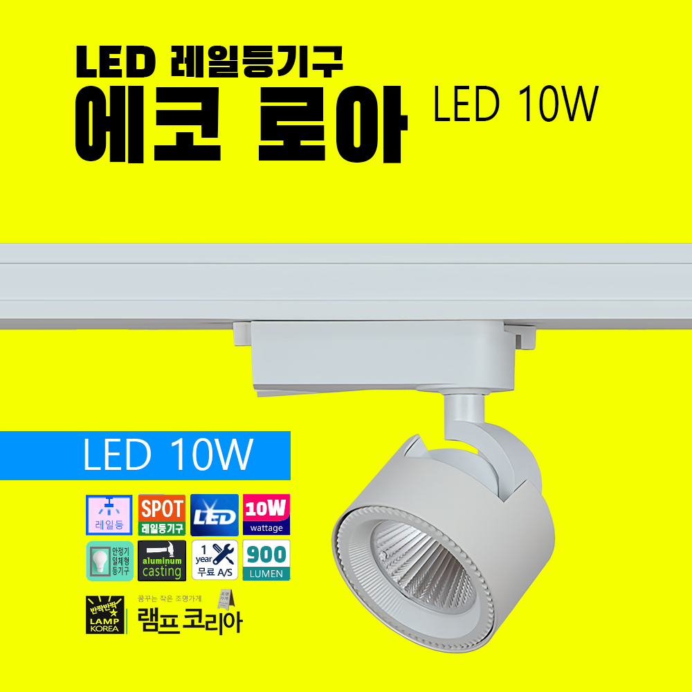 스포트 레일등기구 에코 로아 3인치 10W Ø85 X D130 X H120mm 일체형 레일등 3000K 플리커프리