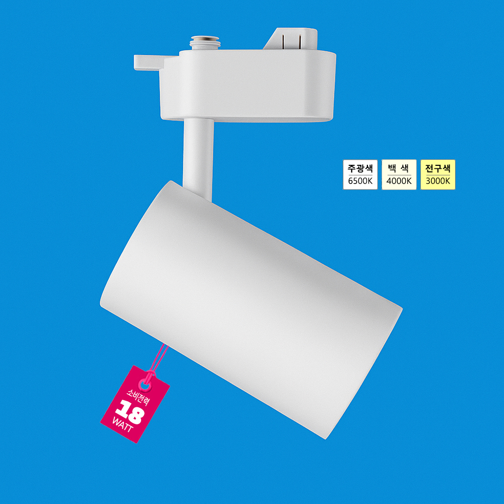공간 명암을 자유롭게 조절 가능! GONEO 레일 트랙 조명 18W 3000K/4000K/6500K Ra80 Ø55 X H100mm