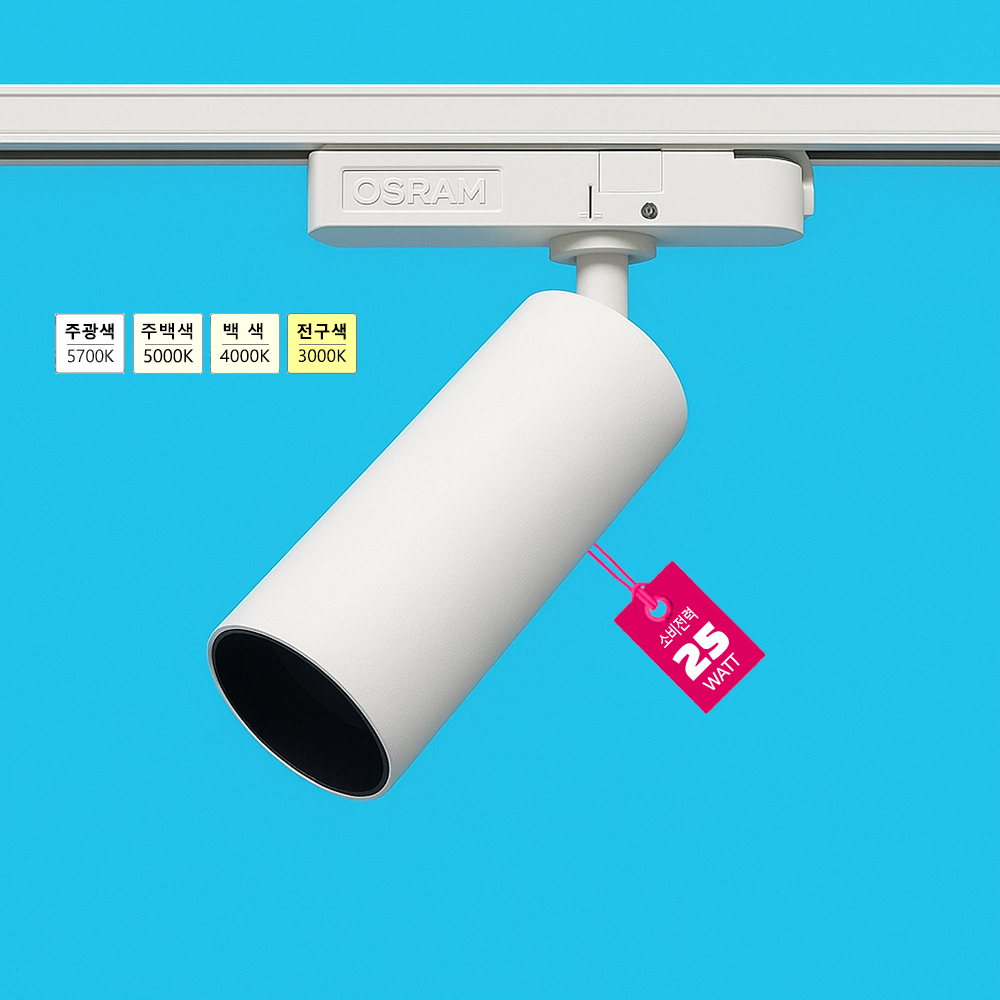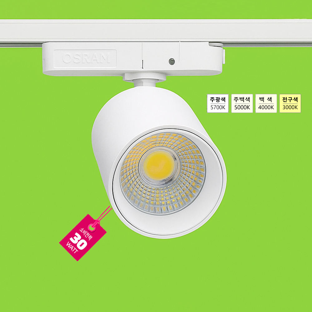 MB 60 트랙등 COB 25W 3000K/4000K/5700K Ra90 2250lm 빔앵글 36도 안정기-오스람