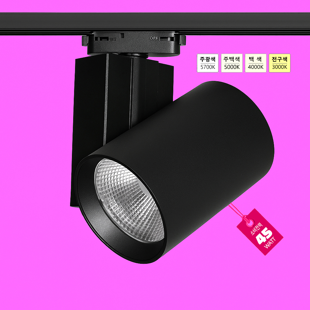 쿼드 COB 45W 트랙등 COB 3000K/4000K/5000K/5700K Ra90 Ø105 X H151mm