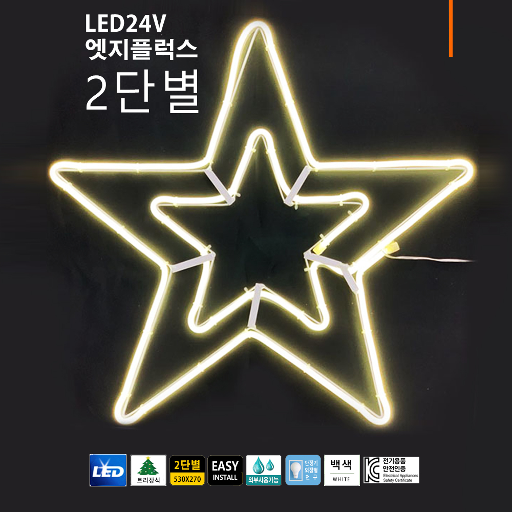 LED 24V 엣지플럭스 2단별 정류기 점멸기 선택 백색 양면발광 크리스마스 츄리 장식 별 조명