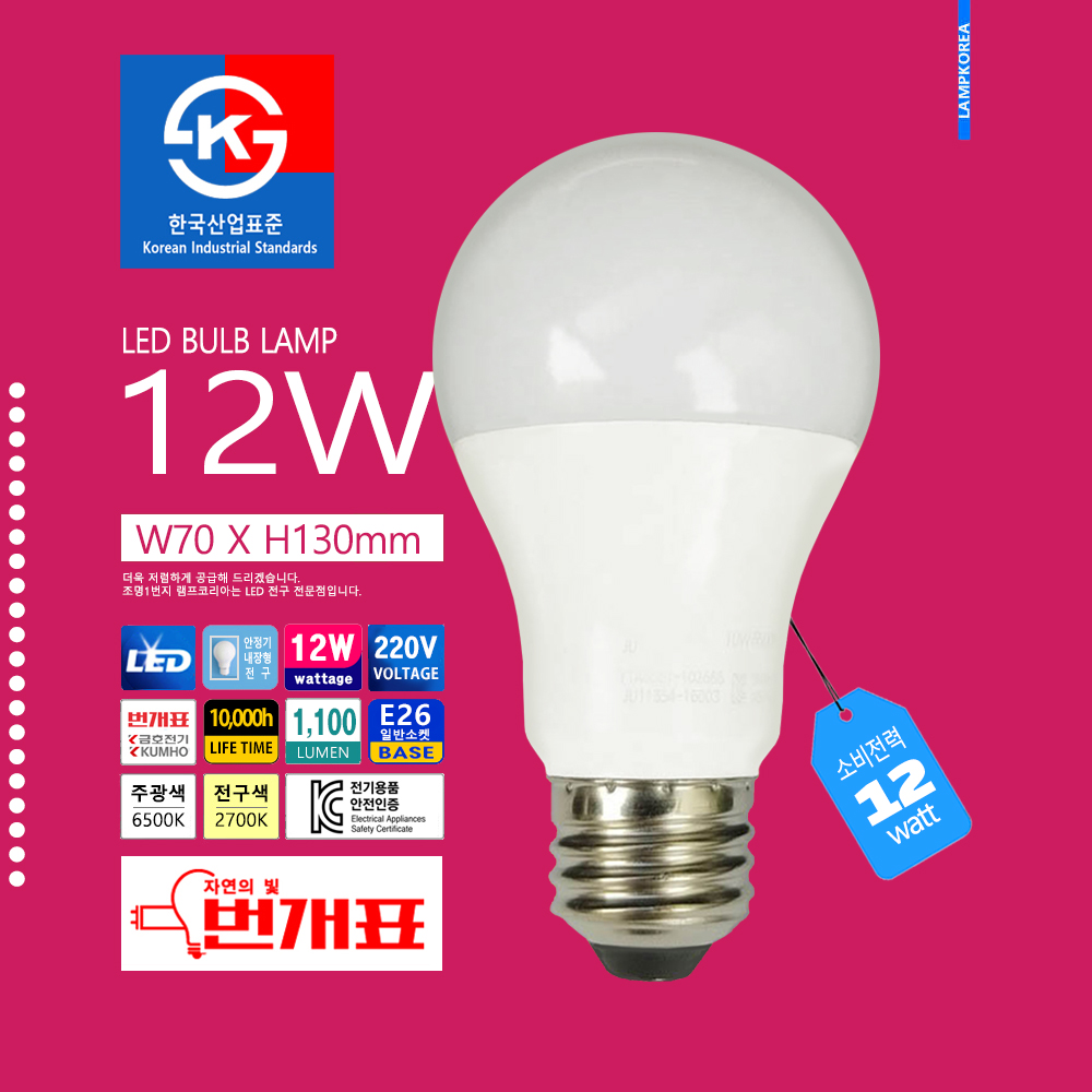 가정에서 선호하는 밝기! LED전구! 백열 80W 밝기 LED BULB 번개표 LED 8W 램프